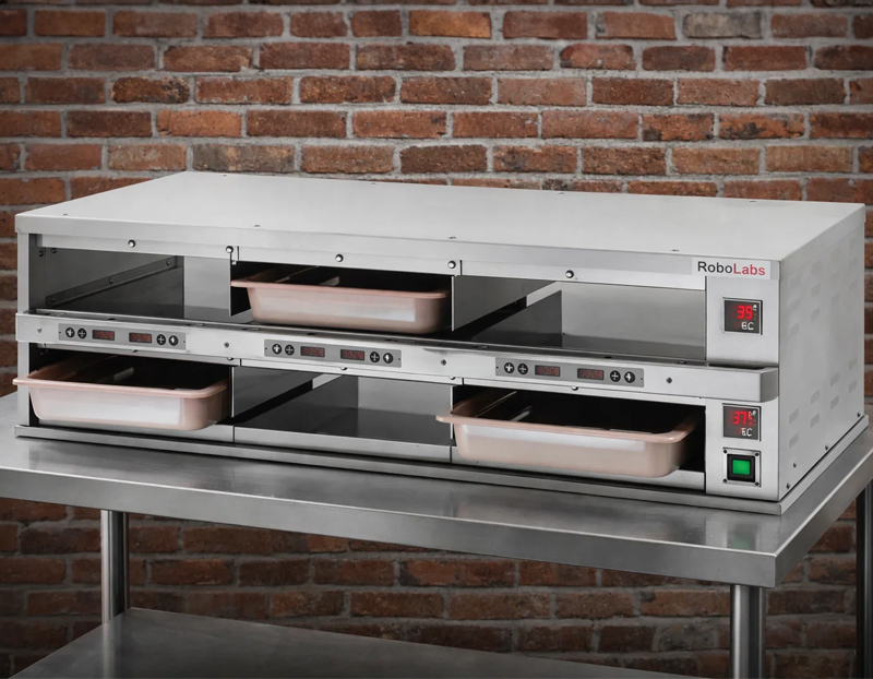 Если вы рассчитываете на большее количество клиентов, то одной охлаждаемой поверхности, особенно в жаркие дни, может не хватить. Фризер для жареного мороженого Foodatlas KCB-2F оснащён двумя «ледяными сковородками», на которых можно готовить этот азиатский холодный десерт как одновременно, так и по-отдельности. Контейнеры с ингредиентами расположены на кронштейне над охлаждаемой поверхностью. Впрочем, по сравнению с Cooleq IF-48GN эта модель не такая мощная, она охлаждает продукт только до -15 градусов, поэтому мороженое готовится примерно 5 минут. 2-компрессорный фризер, работающий на экологичном хладагенте R410A, имеет простое электромеханическое управление. Обе модели, упомянутые в этом обзоре, легко перемещаются с помощью прорезиненных колёс.
