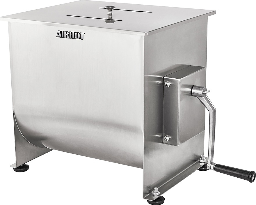 Фаршемешалка Airhot MM-20 используется на предприятиях общественного питания, торговли и пищевых производствах для перемешивания различных видов фарша до однородной консистенции, а также для смешивания творога и овощной смеси. Модель оснащена фиксированной дежой, месильным органом Т-образными лопастями и скребками, ручным приводом и съемной крышкой и регулируемыми винтовыми опорами. Материал изделия - высококачественная нержавеющая сталь.