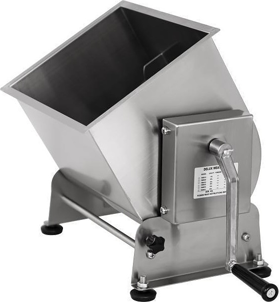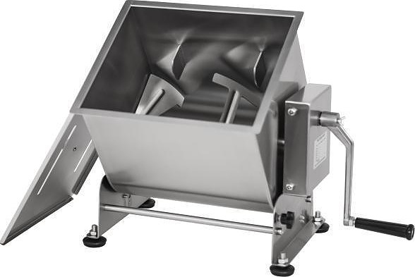 Фаршемешалка Airhot MM-20FH используется на предприятиях общественного питания, торговли и пищевых производствах для перемешивания различных видов фарша до однородной консистенции, а также для смешивания творога и овощной смеси. Модель оснащена опрокидывающейся дежой, месильным органом Т-образными лопастями и скребками, ручным приводом и съемной крышкой и регулируемыми винтовыми опорами. Материал изделия - высококачественная нержавеющая сталь.