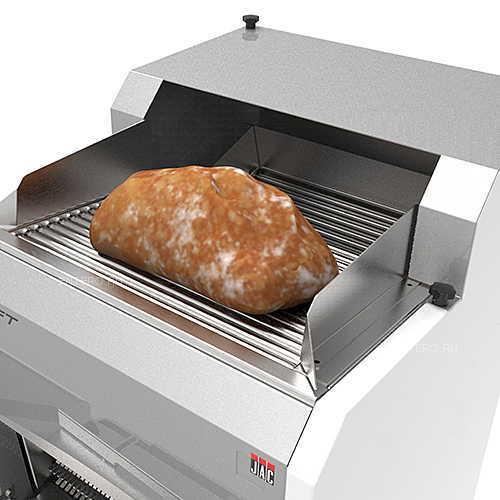 Автоматическая хлеборезка Jac Swift 450M предназначается для непрерывного и серийного нарезания хлеба на предприятиях общественного питания, торговли и производствах. Модель оснащена микронизированной системой смазки для ножей, позволяющей резать хлеб с высоким содержанием ржи и липкого мякиша. Встроенная система автоматического контроля нарезки хлеба Intelligent Slicing Control позволяет равномерно и качественно нарезать плотный, хрустящий, либо воздушный хлеб. Крошки собираются в съёмный бак. Фронтальная загрузочная зона. В зоне переворачивания буханок находятся фотоэлементы, при фиксации ими руки оператора или постороннего предмета срабатывает защитный механизм и работа хлеборезки останавливается. Материал ножа - тефлон.