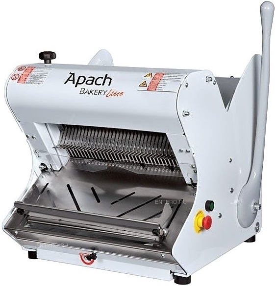 Хлеборезка Apach Bakery Line C42 применяется на предприятиях общественного питания, торговли и пищевых производствах для нарезки формового и подового хлеба. Модель оборудована ручным режимом нарезки с помощью рычага и системой смазки ножей.