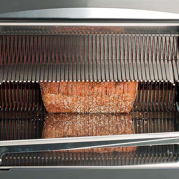 - Встроенная запатентованная система Intelligent Slicing Concept (концепция интеллектуальной нарезки) позволяет отрегулировать скорость нарезки в соответствии с видом хлебобулочного изделия и одинаково хорошо нарезать воздушный, хрустящий или плотный хлеб