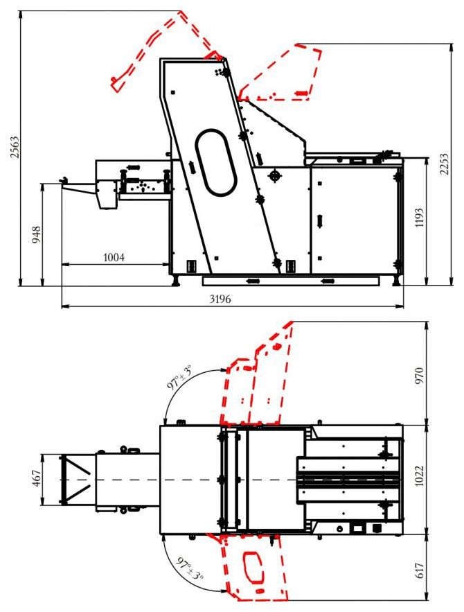 Габариты указаны при закрытых дверях и закрытой верхней крышке.