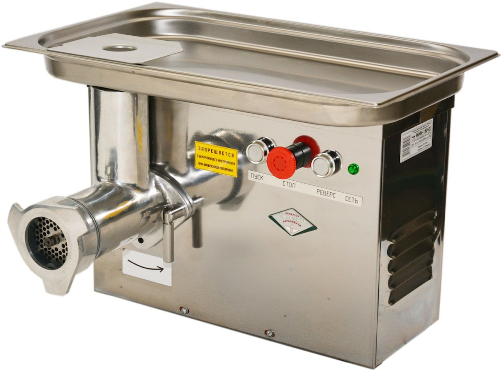 Мясорубка БЕЛТОРГМАШ МИМ-150 используется на предприятиях общественного питания, торговли, а также в производственных цехах, деятельность которых связана с выпуском гастрономических товаров, для измельчения мяса и рыбы на фарш, повторного измельчения котлетной массы и набивки колбас. Модель оснащена приводом, съемной чашей и функцией "Реверс", которая позволяет при наматывании жил освободить шнек без дополнительной разборки машин. Корпус выполнен из алюминия, облицовка - из нержавеющей стали.