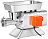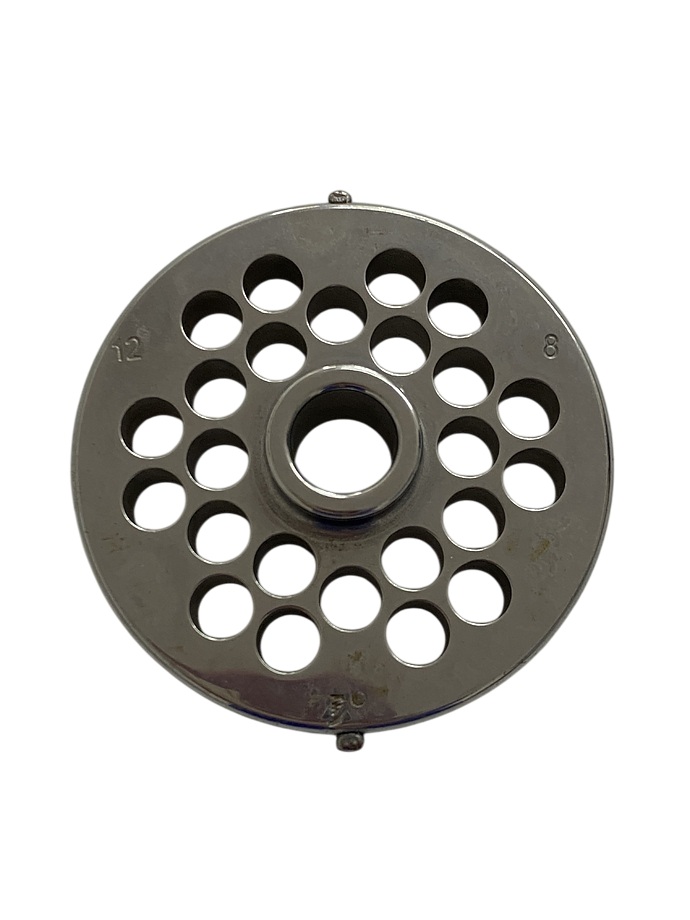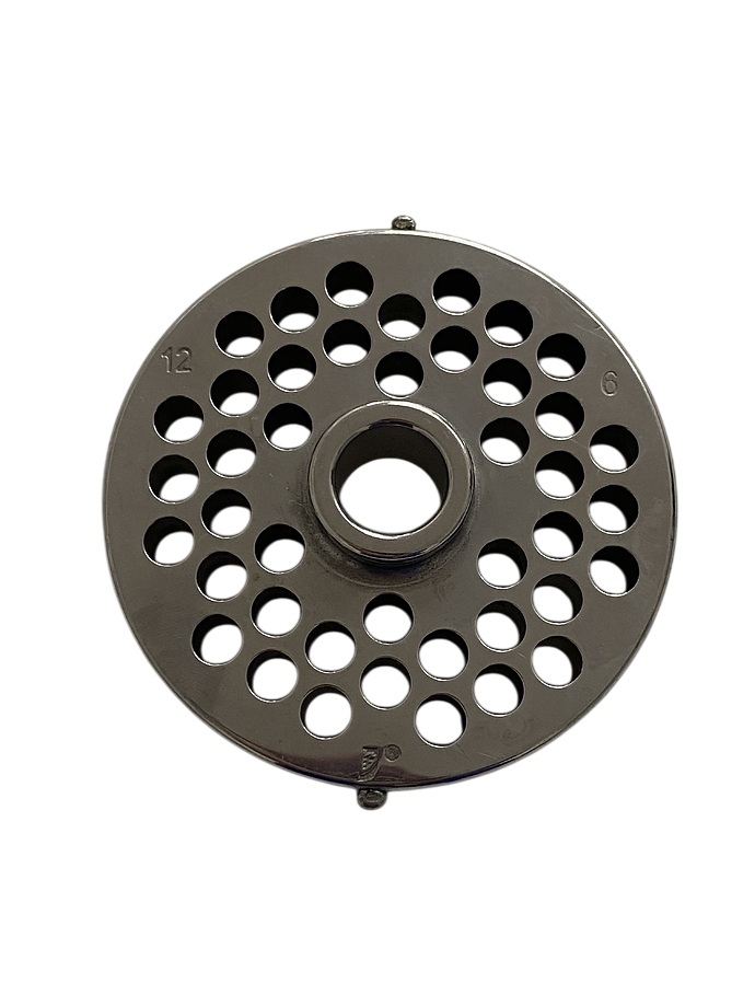 В комплекте загрузочный лоток, нож и решетки с отверстиями 6 и 8 мм из нержавеющей стали, купатница и толкатель.