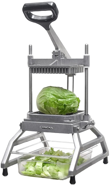 Овощерезка механическая CanCan 1301 используется в барах, кафе, ресторанах, на предприятиях фаст-фуда и пищевых производствах для измельчения вареной куриной грудки, сыра моцарелла, яблок, болгарского перца, листьев салата и других продуктов.