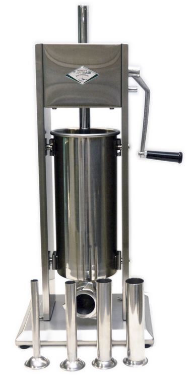 Колбасный шприц БЕЛТОРГМАШ ШКВ-5 используется на предприятиях общественного питания, торговли и пищевых производствах для набивки оболочки в процессе изготовления разнообразных колбасных изделий. Модель оснащена поршеневым механизмом с ручным приводом, устойчивым основанием и удобной рукояткой. Материал корпуса - нержавеющая сталь.