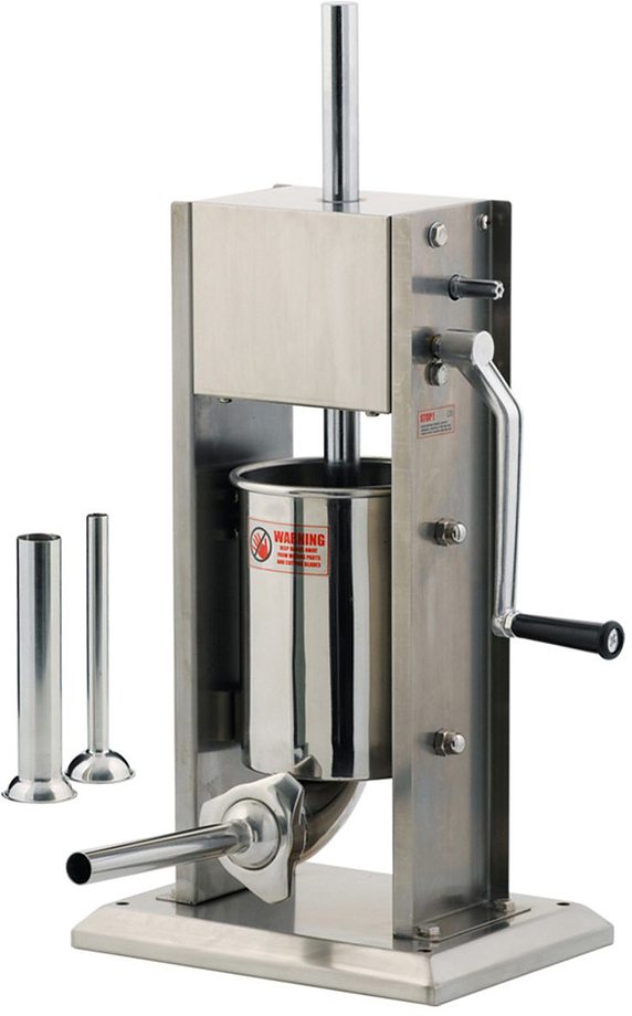 Ручной колбасный шприц Tellier 5750 используется на предприятиях общественного питания, торговли и пищевых производствах для наполнения колбас, купат, сосисок и других изделий. Модель оснащена 3 насадками. Материал изделия - высококачественная нержавеющая сталь.