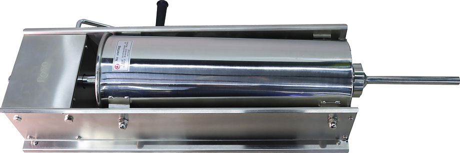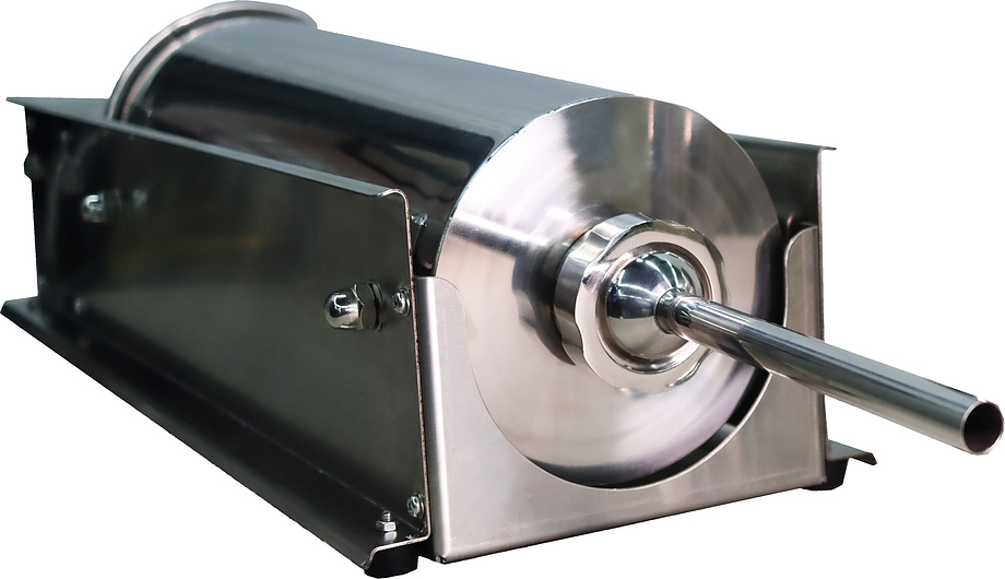 Горизонтальный колбасный шприц Rosso TV-10L используется на предприятиях общественного питания, торговли и пищевых производствах для приготовления колбас, сосисок, сарделек, купат и прочих изделий. Материал корпуса, деталей, соприкасающихся с продуктом - пищевая нержавеющая сталь.