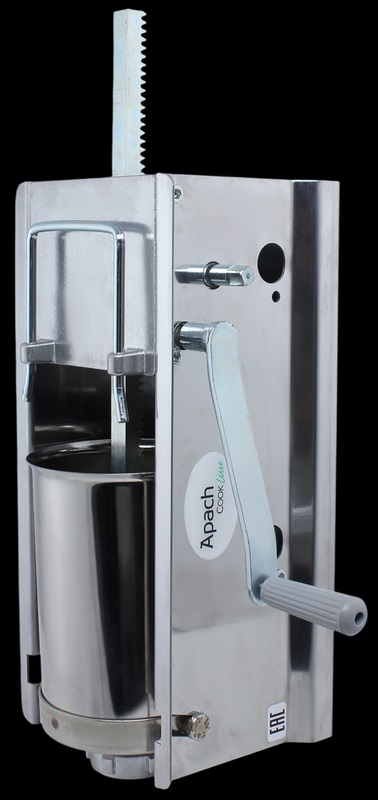 Колбасный шприц Apach Cook Line ASF3 используется на предприятиях общественного питания и торговли для заполнения натуральной или искусственной оболочки различными пастообразными продуктами. Модель имеет горизонтальное исполнение. Сменные насадки позволяют получать различные колбасные изделия. Труба выполнена из нержавеющей стали, поршень - из нейлона.