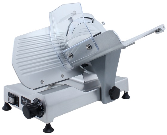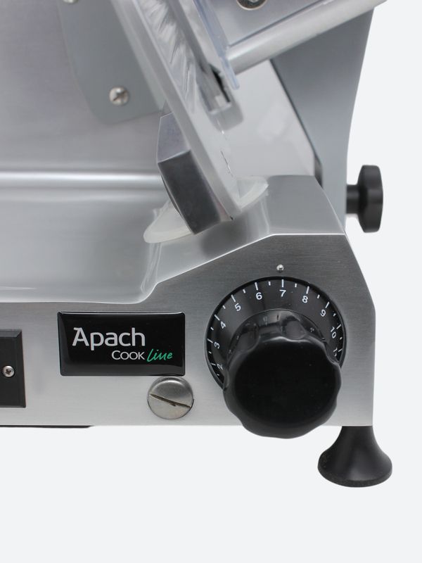 Слайсер Apach Cook Line ASL275 предназначен для нарезки различных продуктов на предприятиях общественного питания и торговли. Модель оснащена вентилируемым мотором и встроенным затачивающим устройством. Корпус выполнен из литого анодированного алюминиевого сплава, нож - из кованой углеродистой стали 100Cr6.