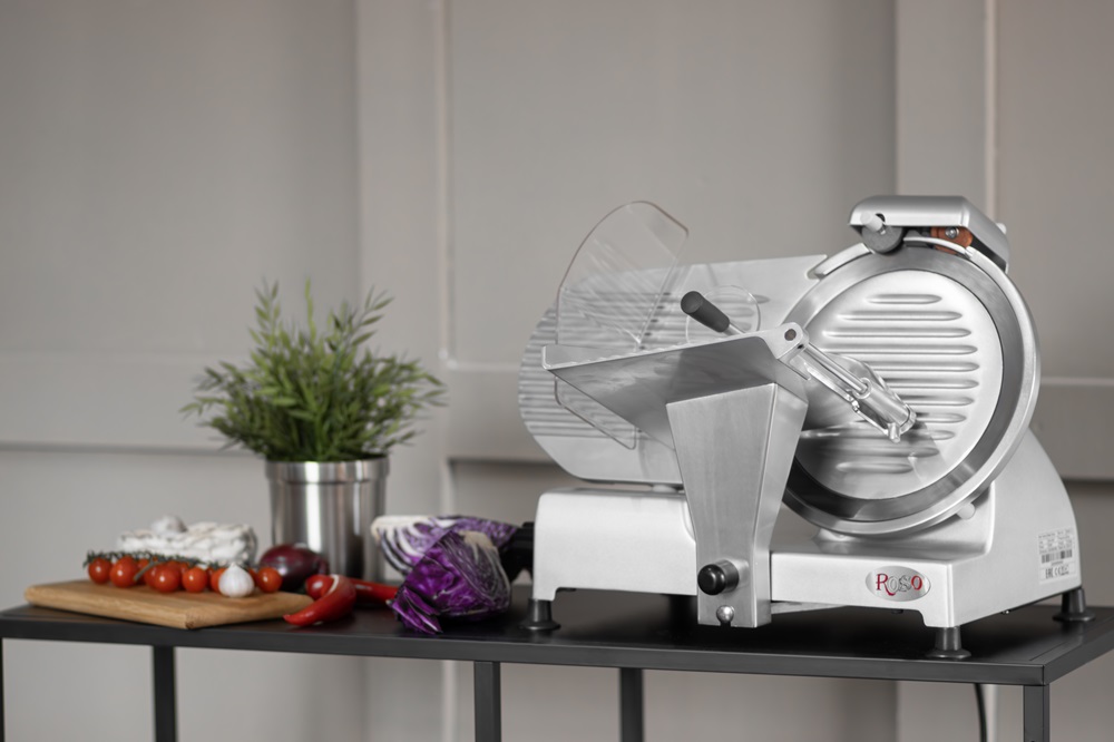 Слайсер Rosso 300ES-12 предназначен для нарезки продуктов на ломтики заданной толщины на предприятиях общественного питания и торговли. Корпус выполнен из нержавеющей стали.