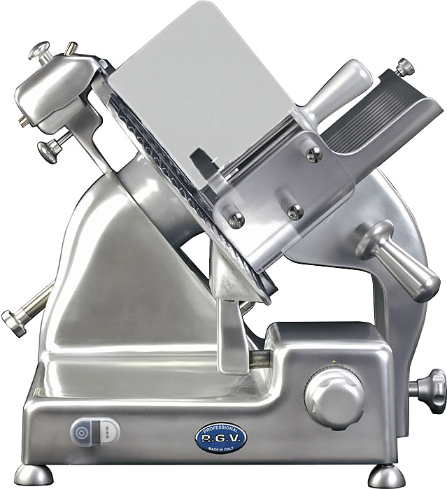 Слайсер RGV Kelly AU-350 M Prof CEP+BLC применяется для тонкой нарезки мяса, сыра, колбасных изделий и других продуктов питания на предприятиях общественного питания, торговли и пищевых производствах. Материал корпуса - лакированный алюминий, деталей - пластик.