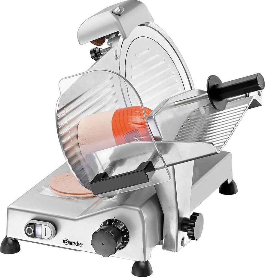 Слайсер Bartscher 275 Plus используется для нарезки колбасных изделий ломтиками на предприятиях общественного питания, торговли и пищевых производствах. Модель оборудована прижимным механизмом, заточным устройством и направляющей съемной наклонной кареткой с 2 ручками. Материал корпуса - алюминий, плексиглас и пластик, материал ножа - высококачественная нержавеющая сталь.