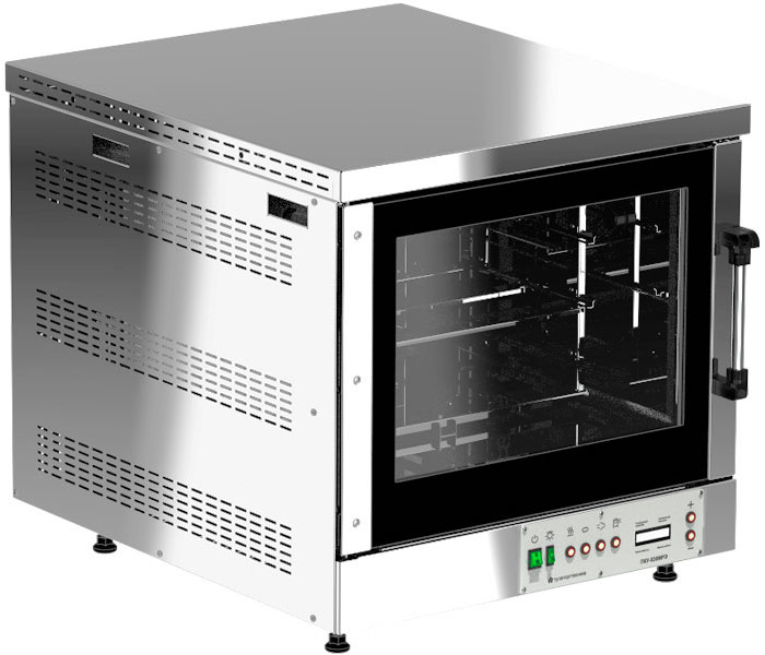 Конвекционная печь Тулаторгтехника ПКУ-530МРЭ предназначена для выпечки хлебобулочных и кондитерских изделий и приготовления различных блюд на предприятиях общественного питания и торговли. Модель оснащена электронной панелью управления с графическим дисплеем. Открываемое внутреннее стекло дверцы облегчают чистку и обеспечивают максимальную гигиену. Тепловая камера, боковые и верхняя облицовочные поверхности и наружные детали дверцы выполнены из нержавеющей стали, задняя и нижняя облицовочная поверхности - из оцинкованной стали.