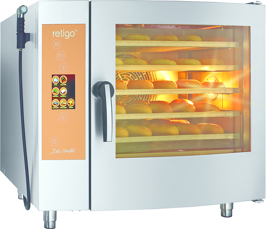 Конвекционная Retigo DM5 используется для выпечки хрустящего сладкого и соленого печенья, багетов, булок для бутербродов и гамбургеров и прочих хлебобулочных изделий, прожарки мяса на предприятиях общественного питания, торговли и пищевых производствах. Шкаф оснащен сенсорной панелью управления.