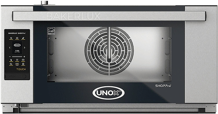 Печь конвекционная UNOX XEFR-03EU-ETDV Elena серии BAKERLUX SHOP.Pro используется для приготовления различных блюд, выпечки хлебобулочных и кондитерских изделий на предприятиях общественного питания, торговли и пищевых производствах. Модель оснащена Touch Screen управлением, дисплеем 2.4", замком, направляющими и LED-подсветкой камеры. Материал камеры - высококачественная нержавеющая сталь AISI 304, материал двери - двойное стекло, материал направляющих - хромированная сталь.
