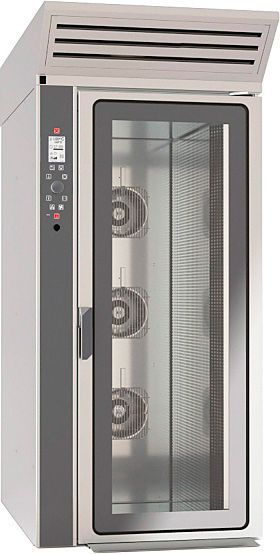 Устройство оснащено 3 реверсными вентиляторами с регулируемой скоростью. Дверца печи, полностью выполненной из нержавеющей стали AISI 430, снабжена раскрывающимся стеклопакетом, что при необходимости позволяет легко осуществлять чистку оборудования изнутри. Галогенная подсветка рабочей камеры делает процесс использования устройства еще более удобным.