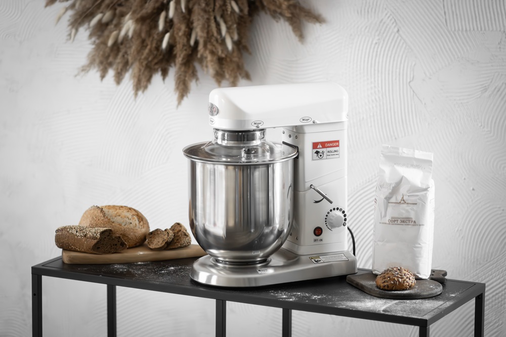 В комплект поставки входят венчик, крюк и лопатка.