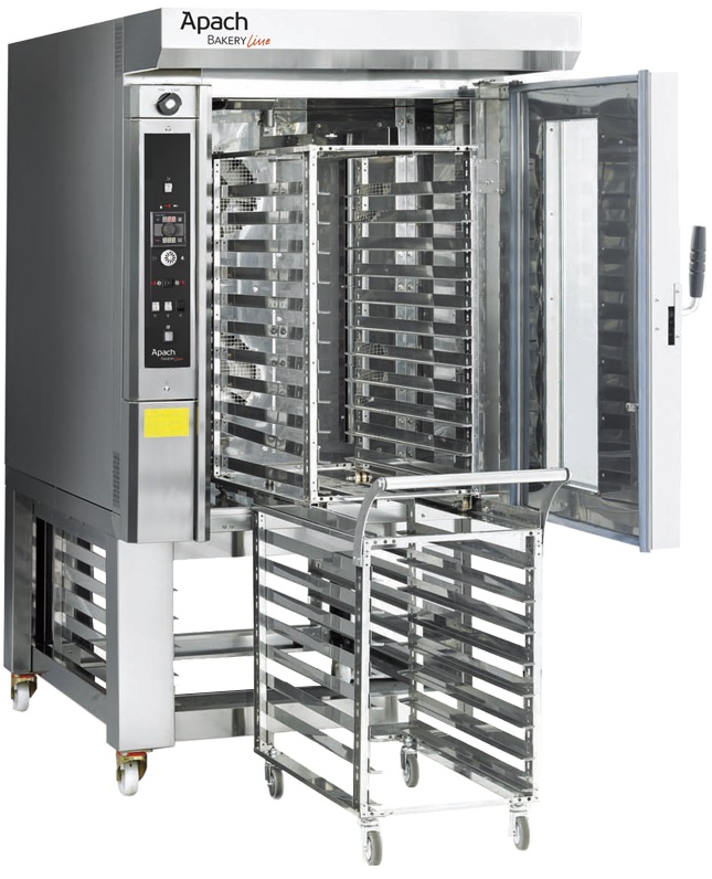 Печь ротационная Apach Bakery Line C46CS DPTA серии C используется на предприятиях общественного питания, торговли и пищевых производствах для выпечки хлебобулочных и кондитерских изделий. Модель оснащена цифровой панелью управления, жидкокристаллическим экраном, вращением при помощи крюка, стандартным и пониженным обдувом, высокопроизводительным парогенератором, козырьком с вытяжкой пара, защитными уплотнителями и подставкой с колесиками. Материал внешнего и внутреннего корпуса - высококачественная нержавеющая сталь, материал теплоизоляции - минеральная вата.