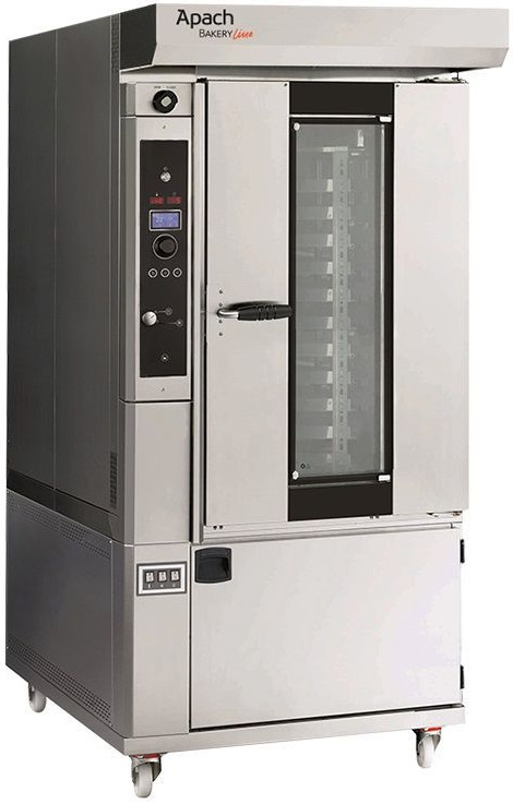 Печь ротационная Apach Bakery Line C46EP TSTA CS серии C используется на предприятиях общественного питания, торговли и пищевых производствах для выпечки хлебобулочных и кондитерских изделий. Модель оснащена TOUCH SCREEN управлением, системой паровых импульсов, автоматическим клапаном пароудаления, вращением при помощи крюка, стандартным и пониженным обдувом, высокопроизводительным парогенератором, козырьком с вытяжкой пара, защитными уплотнителями и колесиками. Материал внешнего и внутреннего корпуса - высококачественная нержавеющая сталь, материал теплоизоляции - минеральная вата.