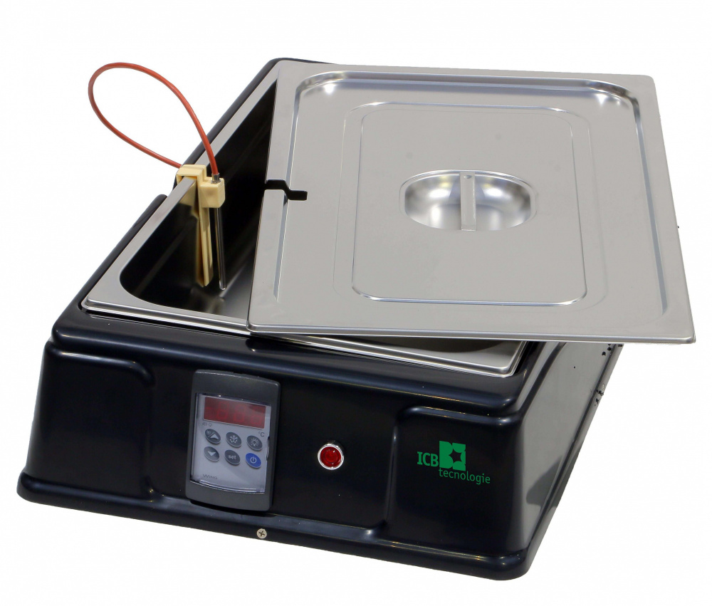 Темпер для шоколада настольный ICB tecnlologie s.r.l. 09.SC13.7LD используется на предприятиях общественного питания и торговли для плавления, подогрева и поддержания горячего состояния шоколада или глазури. Единая температура легко поддерживается благодаря сухой системе нагрева дна и контейнеров. Материал корпуса - пластик, съёмные контейнеры и крышка выполнены из нержавеющей стали. Модель оснащена электронным термостатом.