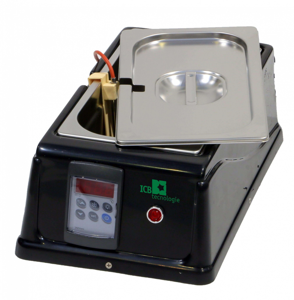 Темпер для шоколада настольный ICB tecnlologie s.r.l. 09.SC3.5LD используется на предприятиях общественного питания и торговли для плавления, подогрева и поддержания горячего состояния шоколада или глазури. Единая температура легко поддерживается благодаря сухой системе нагрева дна и контейнеров. Материал корпуса - пластик, съёмные контейнеры и крышка выполнены из нержавеющей стали. Модель оснащена электронным термостатом.