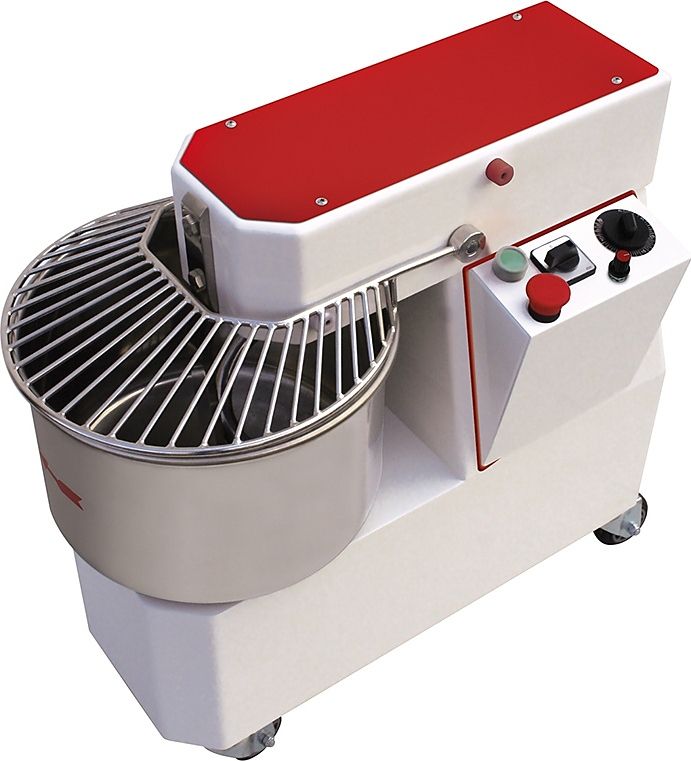Спиральный тестомес Pizza Group IR17 VS используется на предприятиях пищевой промышленности, общественного питания и торговли для замеса теста для приготовления пиццы, хлеба и тонких лепешек. Модель оснащена наклонной панелью управления с потенциометром для изменения скорости, таймером, защитной решеткой над дежой и колесами. Спираль, решетка, дежа и отсекатель выполнены из высококачественной нержавеющей стали.