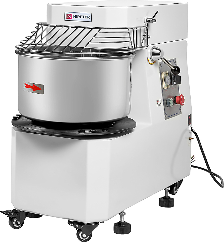 Спиральный тестомес Miratek PRS-20 используется в пекарнях, кондитерских, на предприятиях общественного питания и торговли для замешивания теста с различной основой и консистенцией для выпечки большого ассортимента хлебобулочной продукции из пшеничного, ржаного и ржано-пшеничного теста.
