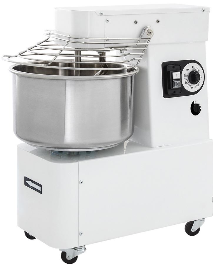 Спиральный тестомес Prismafood IBT 20 2V "EVO" предназначается для замеса слоеного, сдобного и дрожжевого теста на предприятиях общественного питания, торговли и пищевых производства. Из теста можно испечь хлеба, булочки, пироги, пиццы, лепешки и другие хлебобулочные изделия. Тестомес имеет в своей конструкции дежу, спиралевидный месильный орган, тесторазделительный стержень, крышку, колеса, приводной механизм и крюк из нержавеющей стали. Модель оснащена таймером, крышка оборудована предохранительным выключателем. Управление при помощи кнопочной панели. Материал корпуса - окрашенная сталь.