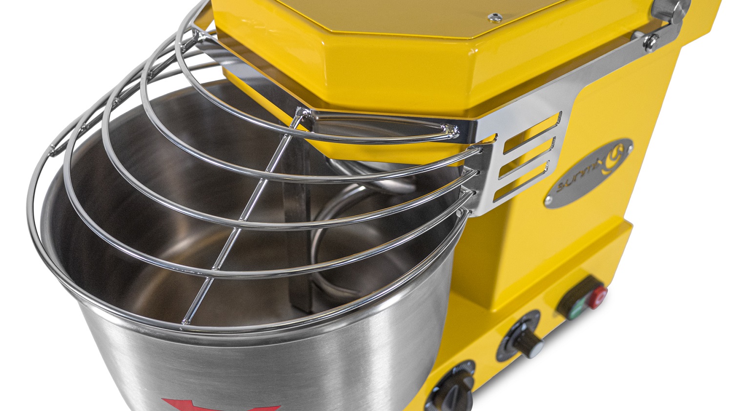 Спиральный тестомес Sunmix SUN6 О используется на предприятиях общественного питания, торговли и пищевых производствах для замешивания различных видов теста. Тестомес оснащен механическим управлением, выдвижными колесиками и таймером. Материал дежи, месильного органа и защитного кожуха - нержавеющая сталь.