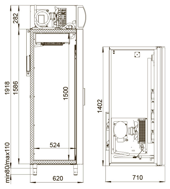 В настоящее время завод применяет регулируемые ножки, обеспечивающие высоту холодильных шкафов POLAIR – среднетемпературных – 1960 мм и низкотемпературных – 1996 мм. На эксплуатационные свойства холодильных шкафов POLAIR данная особенность не влияет. В связи с применением регулируемых по высоте ножек разных производителей общая высота холодильных шкафов может варьироваться следующим образом: для среднетемпературных шкафов объемом 500, 700, 1000 и 1400 литров высота составляет 2028 мм или 1960 мм, низкотемпературных шкафов – 2064 мм или 1996 мм.