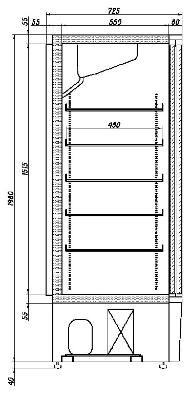 Холодильный шкаф Ариада R1400 MC линии Рапсодия предназначен для демонстрации, охлаждения и кратковременного хранения скоропортящихся продуктов и напитков на предприятиях торговли и общественного питания. Нижнее расположение агрегата является более выгодным с точки зрения мерчандайзинга в отличие от верхнего, позволяет более выгодно выложить товар, а клиенту не наклоняться за товаром на нижнюю полку. Эксплуатация оборудования допускается при температуре окружающей среды от 12 до 32 °C.