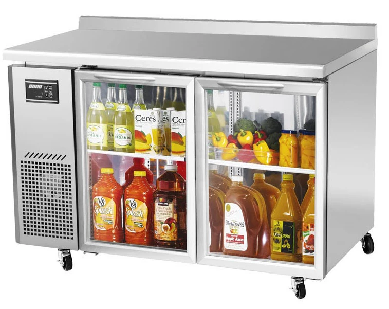 Холодильный стол Turbo air KGWR12-2-600 используется на предприятиях общественного питания, торговли и пищевых производствах для обработки ингредиентов, приготовления блюд, а также демонстрации и кратковременного охлаждения продуктов и напитков. 2 стеклянные двери, 2 регулируемые полки. Материал корпуса и дверных петель - нержавеющая сталь, материал задней и нижней панели - гальванизированная сталь, материал пола - нержавеющая сталь с алюминиевыми вставками, материал полок - толстая стальная проволока с виниловым покрытием, материал уплотнения - ABS-пластик.
