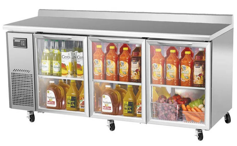 Холодильный стол Turbo air KGWR18-3-700 используется на предприятиях общественного питания, торговли и пищевых производствах для обработки ингредиентов, приготовления блюд, а также демонстрации и кратковременного охлаждения продуктов и напитков. 3 стеклянные двери, 3 регулируемые полки. Материал корпуса и дверных петель - нержавеющая сталь, материал задней и нижней панели - гальванизированная сталь, материал пола - нержавеющая сталь с алюминиевыми вставками, материал полок - толстая стальная проволока с виниловым покрытием, материал уплотнения - ABS-пластик.