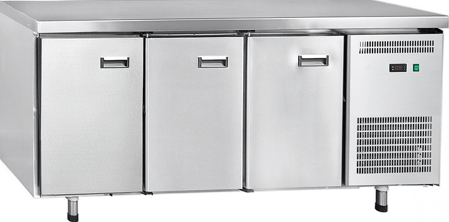 Холодильный стол Abat СХС-70-02 используется на предприятиях общественного питания и торговли для охлаждения и кратковременного хранения продуктов питания и напитков. Рабочая поверхность предназначена для раскатки теста и обработки ингредиентов перед приготовлением различных блюд. В модели установлена неохлаждаемая рабочая поверхность, распашные дверцы с магнитной вставкой, 3 полки-решетки и регулируемые по высоте ножки. Материал корпуса - нержавеющая сталь AISI 202, материал изоляции - пенополиуретан.
