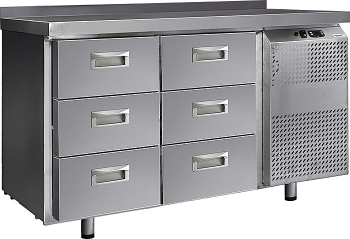 Холодильный стол Finist СХС-600-0/6 используется на предприятиях общественного питания, торговли и пищевых производствах для хранения и обработки полуфабрикатов из мяса и рыбы, заготовок для салата, охлажденных напитков и прочих пищевых продуктов. Управление при помощи кнопочной панели управления, оснащенной цифровым дисплеем. 6 выдвижных ящиков, агрегатный отсек располагается сбоку. Стол установлен на ножки с подпятниками. Материал корпуса - нержавеющая сталь.