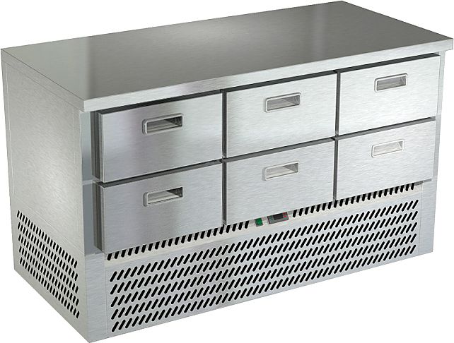 Холодильный стол Техно-ТТ СПН/О-123/06-1406 предназначается для раскатки теста, обработки, охлаждения и кратковременного хранения продуктов и напитков на предприятиях общественного питания, торговли и пищевых производствах. Секции оснащены направляющими и ящиками с доводчиками. Материал корпуса и столешницы - нержавеющая сталь AISI 430, материал задней панели и дна - оцинкованная сталь.