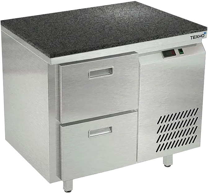 Холодильный стол Техно-ТТ СПБ/О-323/02-906 предназначается для раскатки теста, обработки, охлаждения и кратковременного хранения продуктов и напитков на предприятиях общественного питания, торговли и пищевых производствах. Секции оснащены направляющими и ящиками с доводчиками. Материал корпуса - нержавеющая сталь AISI 430, материал столешницы - гранит (толщина 20 мм), материал задней панели и дна - оцинкованная сталь.