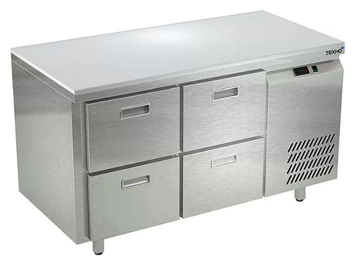 Холодильный стол Техно-ТТ СПБ/О-523/04-1306 предназначается для раскатки теста, обработки, охлаждения и кратковременного хранения продуктов и напитков на предприятиях общественного питания, торговли и пищевых производствах. Секции оснащены направляющими и ящиками с доводчиками. Материал корпуса - нержавеющая сталь AISI 430, материал столешницы - полипропилен, материал задней панели и дна - оцинкованная сталь.