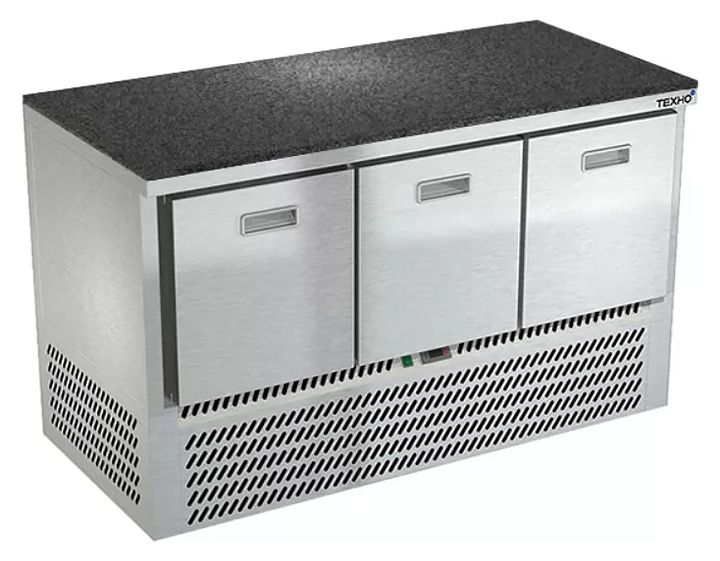 Холодильный стол Техно-ТТ СПН/О-323/03-1407 предназначается для раскатки теста, обработки, охлаждения и кратковременного хранения продуктов и напитков на предприятиях общественного питания, торговли и пищевых производствах. Секции оснащены направляющими и ящиками с доводчиками. Материал корпуса - нержавеющая сталь AISI 430, материал столешницы - гранит (толщина 20 мм), материал задней панели и дна - оцинкованная сталь.