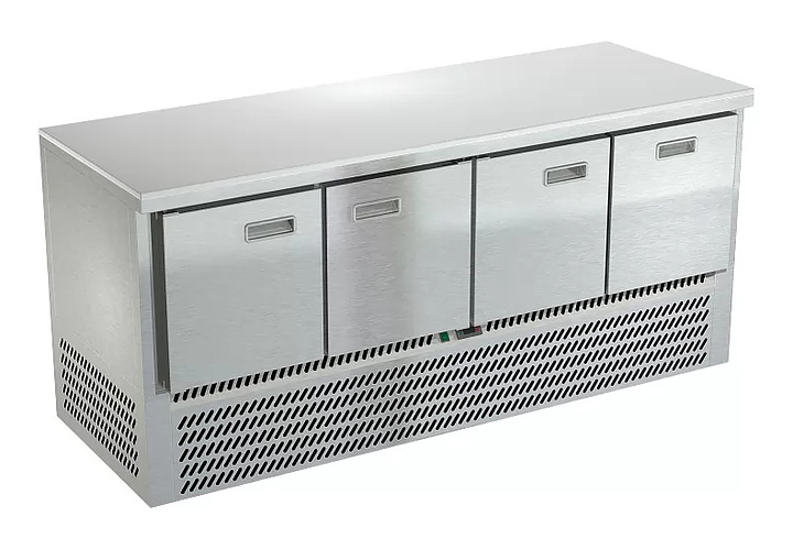 Холодильный стол Техно-ТТ СПН/О-522/31-1906 предназначается для раскатки теста, обработки, охлаждения и кратковременного хранения продуктов и напитков на предприятиях общественного питания, торговли и пищевых производствах. Секции оснащены направляющими и ящиками с доводчиками. Материал корпуса - нержавеющая сталь AISI 430, материал столешницы - полипропилен (толщина 20 мм), материал задней панели и дна - оцинкованная сталь.