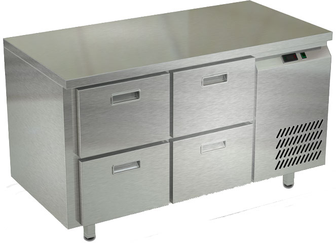 Холодильный стол Техно-ТТ СПБ/О-123/04-1307 предназначен для раскатки теста, обработки, охлаждения и кратковременного хранения продуктов и напитков на предприятиях общественного питания и торговли. Модель оснащена компрессором АСС (Италия), каждый ящик - доводчиками. Корпус выполнен из нержавеющей стали, задняя стенка - из оцинкованной стали.
