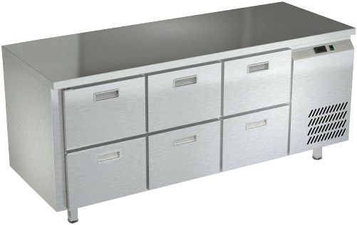 Холодильный стол Техно-ТТ СПБ/О-123/06-1806 предназначен для раскатки теста, обработки, охлаждения и кратковременного хранения продуктов и напитков на предприятиях общественного питания и торговли. Модель оснащена компрессором АСС (Италия), каждый ящик - доводчиками. Корпус выполнен из нержавеющей стали, задняя стенка - из оцинкованной стали.