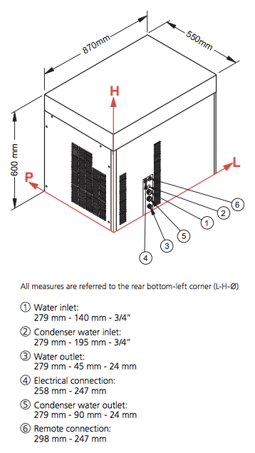 - При температуре окружающей среды 21 °C и водопроводной воды 15 °С: 250 кг/сутки