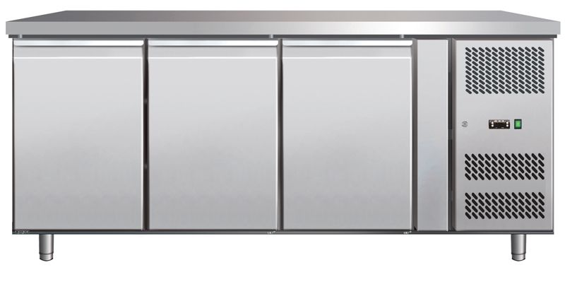 Морозильный стол Koreco GN 3100 BT предназначен для раскатки теста и обработки ингредиентов для приготовления блюд, заморозки и хранения продуктов, полуфабрикатов и мороженого на предприятиях общественного питания и торговли. Корпус и камера выполнены из нержавеющей стали AISI 304.