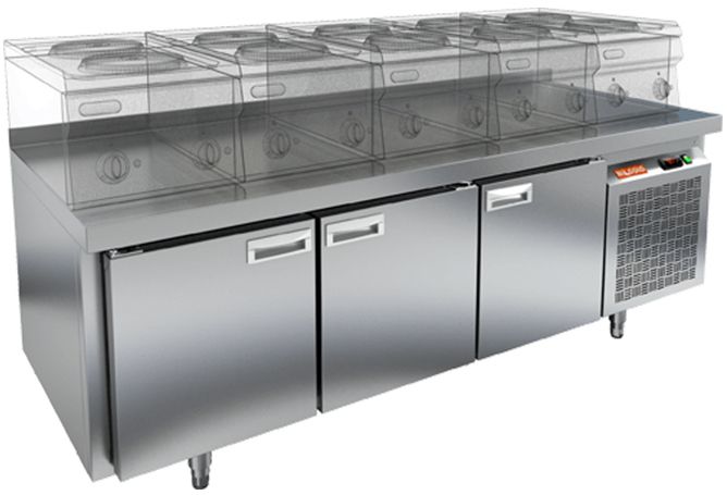 Морозильный стол HICOLD SN 111/BT LT предназначен для установки на него теплового оборудования, заморозки и хранения продуктов, полуфабрикатов и мороженого на предприятиях общественного питания и торговли. Цельнозаливной корпус выполнен из нержавеющей стали с изоляцией толщиной 50 мм, что обеспечивает высокую герметичность и жесткость конструкции.