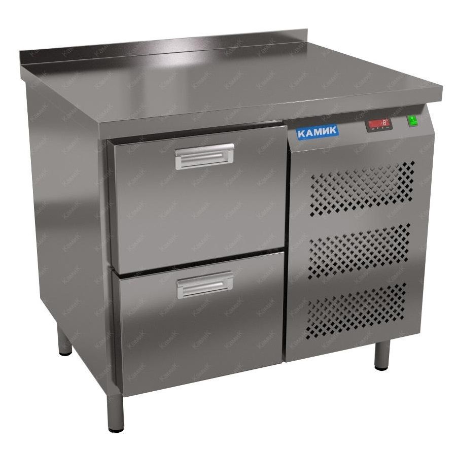 Морозильный стол КАМИК СМ-0298 используется на предприятиях общественного питания и торговли для заморозки и длительного хранения продуктов, полуфабрикатов и мороженого. Конструкция разделена на секции, каждая из которых оборудована сетчатой полкой и парой направляющих. Корпус выполнен из нержавеющей стали AISI 430 толщиной 1 мм, столешница - из нержавеющей стали AISI 304 толщиной 1,5 мм.