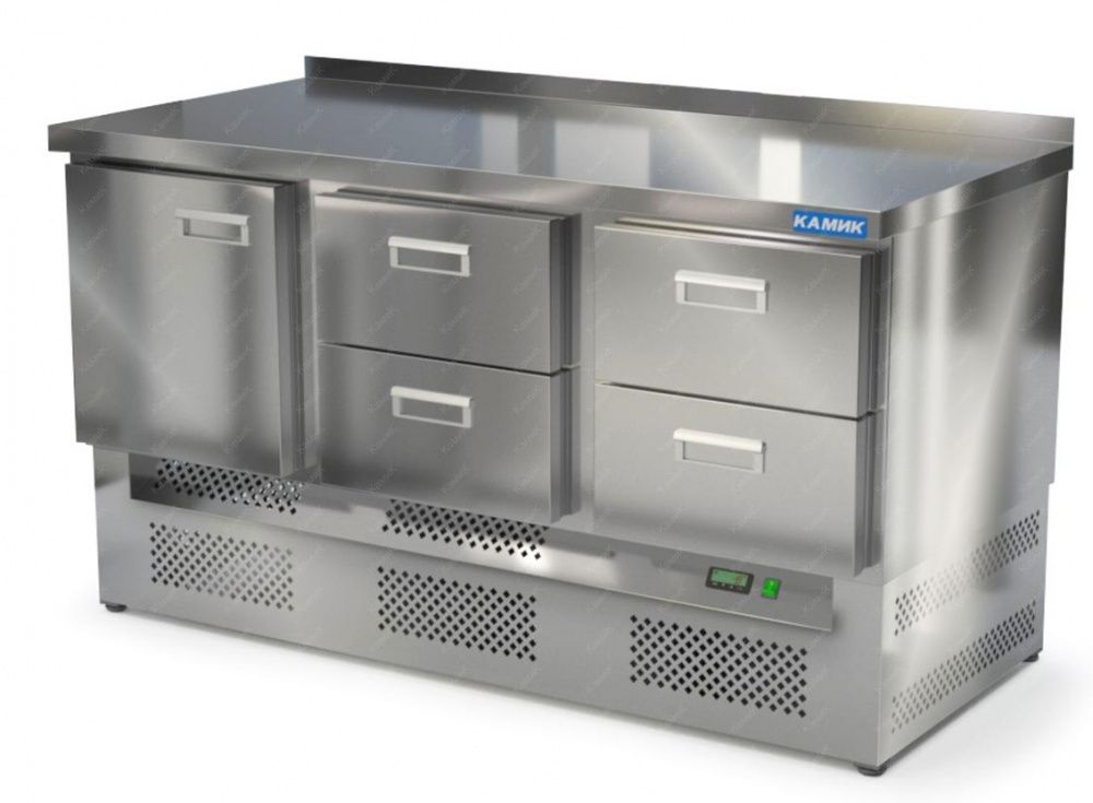Морозильный стол КАМИК СМ-14156Н используется на предприятиях общественного питания и торговли для заморозки и длительного хранения продуктов, полуфабрикатов и мороженого. Конструкция разделена на секции, каждая из которых оборудована сетчатой полкой и парой направляющих. Корпус выполнен из нержавеющей стали AISI 430 толщиной 1 мм, столешница - из нержавеющей стали AISI 304 толщиной 1,5 мм.