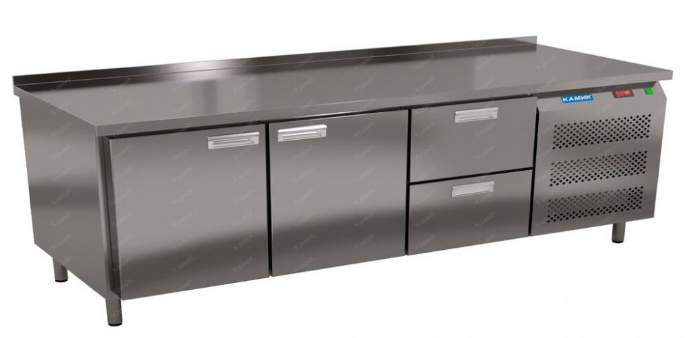 Морозильный стол КАМИК СМ-Т-221857 используется на предприятиях общественного питания и торговли для заморозки и длительного хранения продуктов, полуфабрикатов и мороженого, а также для установки теплового оборудования на него. Конструкция разделена на секции, каждая из которых оборудована сетчатой полкой и парой направляющих. Корпус выполнен из нержавеющей стали.
